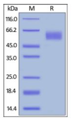 | Molecular Mass : | This protein carries a polyhistidine tag at the C-terminus.The protein has a calculated MW of 35.9 kDa. The protein migrates as 55-65 kDa under reducing (R) condition (SDS-PAGE) due to glycosylation. |