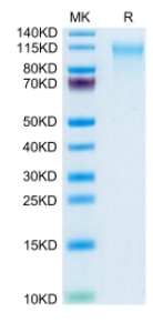 Molecular Mass : | The protein has a predicted MW of 41.2 kDa. Due to glycosylation, the protein migrates to 110-115 kDa based on Tris-Bis PAGE result. |