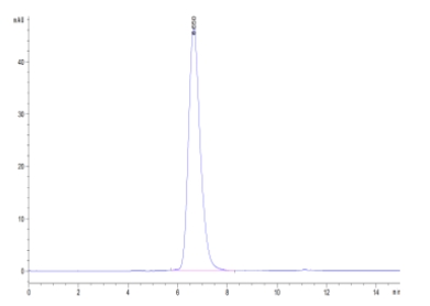 | Molecular Mass : | The protein has a predicted MW of 41.2 kDa. Due to glycosylation, the protein migrates to 110-115 kDa based on Tris-Bis PAGE result. |