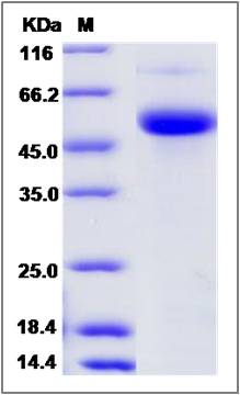 | Molecular Mass : | The recombinant human CD177 comprises 397 amino acids and has a predicted molecular mass of 42.7 kDa. The apparent molecular mass of the protein is approximately 53 kDa in SDS-PAGE under reducing conditions. |