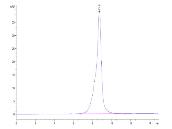 | Molecular Mass : | The protein has a predicted MW of 33.3 kDa. Due to glycosylation, the protein migrates to 48-53 kDa and 13-14 kDa based on Tris-Bis PAGE result. |