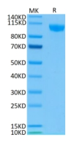 Molecular Mass : | The protein has a predicted MW of 78.1 kDa. Due to glycosylation, the protein migrates to 110-120 kDa based on Tris-Bis PAGE result. |