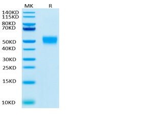 | Molecular Mass : | The protein has a predicted MW of 29.5 kDa.Due to glycosylation, the protein migrates to 48- 58KDa based on Bis-Tris PAGE result. |