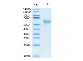 Molecular Mass : | The protein has a predicted MW of 29.5 kDa. Due to glycosylation, the protein migrates to 50-70 kDa based on Bis-Tris PAGE result. |