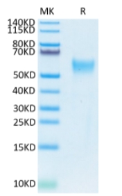 Molecular Mass : | The protein has a predicted MW of 29.5 kDa. Due to glycosylation, the protein migrates to 48-58 kDa based on Tris-Bis PAGE result. |