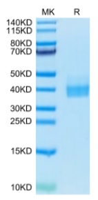 Molecular Mass : | The protein has a predicted MW of 28.1 kDa. Due to glycosylation, the protein migrates to 35-45 kDa based on Tris-Bis PAGE result. |