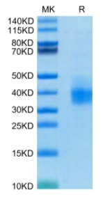 Molecular Mass : | The protein has a predicted MW of 26 kDa. Due to glycosylation, the protein migrates to 35-42 kDa based on Tris-Bis PAGE result. |
