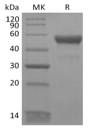 Molecular Mass : | The recombinant Human CD300LB Protein has a predicted molecular mass of 42.2kDa , it migrates with an apparent molecular mass of 50-60kDa under reducing conditions. |