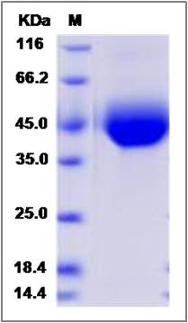 Molecular Mass : | The recombinant human CD33 comprises 253 amino acids and has a predicted molecular mass of 28.2 kDa. The apparent molecular mass of the protein is approximately 40-46 kDa in SDS-PAGE under reducing conditions. |