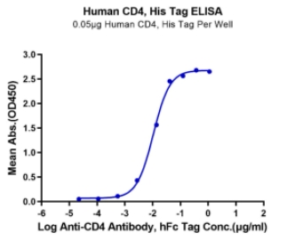 | Bio-activity : | Immobilized Human CD4 at 0.5μg/ml (100μl/Well) on the plate. Dose response curve for Anti-CD4 Antibody, hFc Tag with the EC50 10.6ng/ml determined by ELISA. |