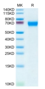 | Molecular Mass : | The protein has a predicted MW of 35.4 kDa. Due to glycosylation, the protein migrates to 60-70 kDa based on Tris-Bis PAGE result. |