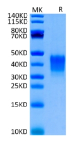 Molecular Mass : | The protein has a predicted MW of 19.3 kDa. Due to glycosylation, the protein migrates to 34-48 kDa based on Tris-Bis PAGE result. |