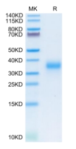 Molecular Mass : | The protein has a predicted MW of 19.1 kDa. Due to glycosylation, the protein migrates to 30-40 kDa based on Tris-Bis PAGE result. |