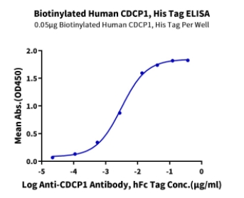 | Bio-activity : | Immobilized Biotinylated Human CDCP1, His Tag at 0.5ug/ml (100ul/Well) on streptavidin (5ug/ml) precoated plate. Dose response curve for Anti-CDCP1 Antibody, hFc Tag with the EC50 of 3.1ng/ml determined by ELISA. |