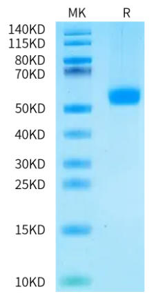 | Molecular Mass : | The protein has a predicted MW of 39.25 kDa. Due to glycosylation, the protein migrates to 50-60 kDa based on Bis-Tris PAGE result. |