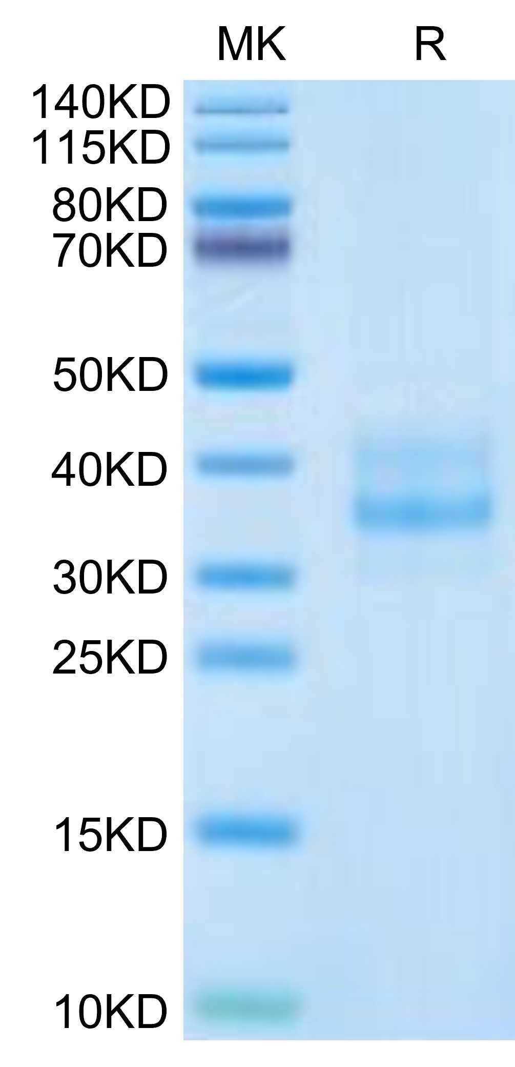 | Molecular Mass : | The protein has a predicted MW of 25.15 kDa. Due to glycosylation, the protein migrates to 35-45 kDa based on Tris-Bis PAGE result. |