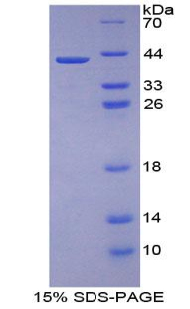 42kDa as determined by SDS-PAGE reducing conditions. |
