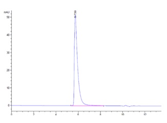 The protein has a predicted MW of 74.2 kDa.Due to glycosylation, the protein migrates to 115-180 KDa based on Bis-Tris PAGE result. |