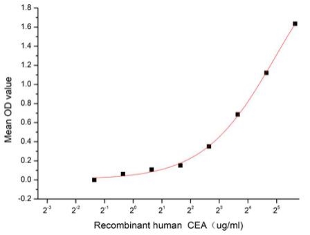 | Bio-activity : | Carcinoembryonic antigen (CEA), as one of the common tumor markers, is a human glycoprotein involved in cell adhesion and is expressed during human fetal development. Since the birth of human, CEA expression is largely inhibited, with only low levels in the plasma of healthy adults. Generally, CEA will overexpressed in many cancers, including gastric, breast, ovarian, lung, and pancreatic cancers, especially colorectal cancer. The lectin galactoside-binding soluble 3 binding protein (LGALS3BP) is also a secreted, which was first identified as cancer and metastasis associated protein. LGALS3BP has been identified as an interactor of CEA, thus a functional binding ELISA assay was conducted to detect the interaction of recombinant human CEA and recombinant human LGALS3BP. Briefly, biotin-linked CEA were diluted serially in PBS, with 0.01% BSA (pH 7.4). Duplicate samples of 100 ul were then transferred to LGALS3BP-coated microtiter wells and incubated for 1h at 37°C. Wells were washed with PBST 3 times and incubation with Streptavidin-HRP for 30min, then wells were aspirated and washed 5 times. With the addition of substrate solution, wells were incubated 15-25 minutes at 37°C. Finally, add 50 µl stop solution to the wells and read at 450 nm immediately. The binding activity of CEA and LGALS3BP was shown, and this effect was in a dose dependent manner. |