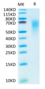 | Molecular Mass : | The protein has a predicted MW of 34.1 kDa. Due to glycosylation, the protein migrates to 55-75 kDa based on Tris-Bis PAGE result. |