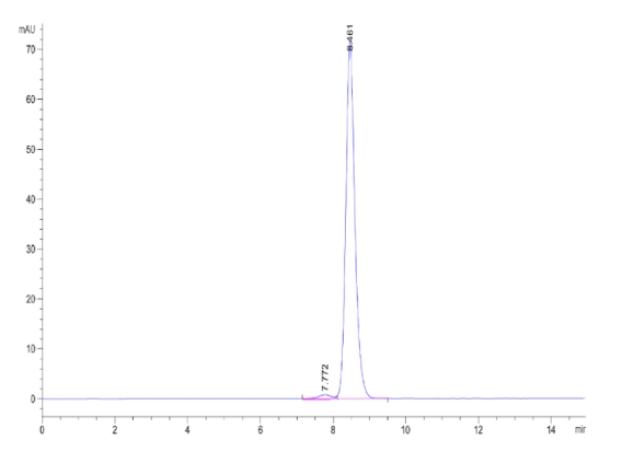 | Purity : | The purity of the protein is greater than 85% as determined by SDS-PAGE and Coomassie blue staining. |