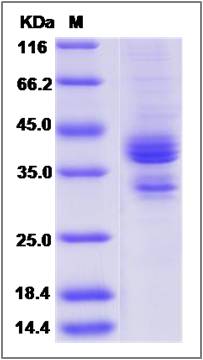 | Molecular Mass : | The recombinant human CGREF1 comprises 293 amino acids and has a predicted molecular mass of 31.3 kDa. The apparent molecular mass of the protein is approximately 38-42 and 33 kDa in SDS-PAGE under reducing conditions. |