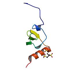Neutrophil Activating Peptide 2 (NAP-2) is proteolytically processed carboxyl-terminal fragments of platelet basic protein (PBP) which is found in the alpha-granules of human platelets. NAP-2 is a member of the CXC chemokines. Similar to other ELR domain containing CXC chemokines such as IL-8 and the GRO proteins, NAP-2 has been shown to bind CXCR-2 and to chemoattract and activate neutrophils. Although CTAP-III, β-TG and PBP represent amino-terminal extended variants of NAP-2 and possess the same CXC chemokine domains, these proteins do not exhibit NAP-2 activity. Recently, it has been shown that the additional amino-terminal residues of CTAP-III masks the critical ELR receptor binding domain that is exposed on NAP-2 and may account for lack of NAP-2 activity. |