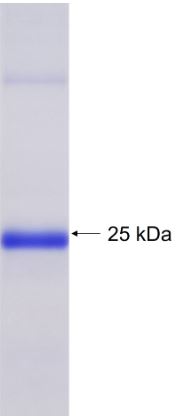 Form : | The purified protein was lyophilized from sterile phosphate-buffered saline (PBS: 58 mM Na₂HPO₄, 17 mM NaH₂PO₄, 68 mM NaCl, pH 7.4). Prior to lyophilization, 5% (w/v) trehalose and 5% (w/v) mannitol were incorporated as cryoprotective excipients. |