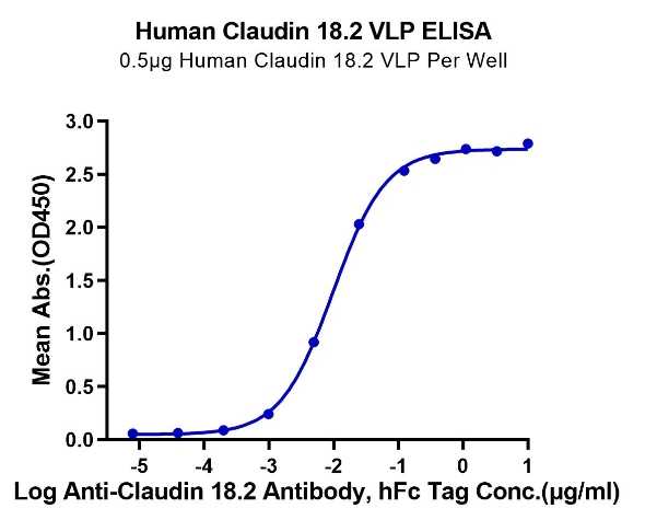 | Bio-activity : | Immobilized Human Claudin 18.2 VLP at 5 ug/ml (100 ul/Well). Dose response curve for Anti-Claudin 18.2 Antibody, hFc Tag with the EC50 of 9.8 ng/ml determined by ELISA. |