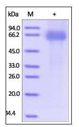 | Molecular Mass : | The protein has a calculated MW of 55.7 kDa. The protein migrates as 60-75 kDa under reducing (R) condition (SDS-PAGE) due to glycosylation. |