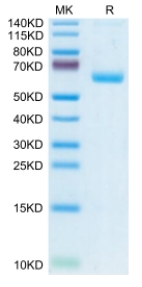 | Molecular Mass : | The protein has a predicted MW of 51.2 kDa. Due to glycosylation, the protein migrates to 60-70 kDa based on Tris-Bis PAGE result. |