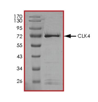 The protein encoded by this gene belongs to the CDC2-like protein kinase (CLK) family. This protein kinase can interact with and phosphorylate the serine- and arginine-rich (SR) proteins, which are known to play an important role in the formation of spliceosomes, and thus may be involved in the regulation of alternative splicing. Studies in the Israeli sand rat Psammomys obesus suggested that the ubiquitin-like 5 (UBL5/BEACON), a highly conserved ubiquitin-like protein, may interact with and regulate the activity of this kinase. Multiple alternatively spliced transcript variants have been observed, but the full-length natures of which have not yet been determined. |