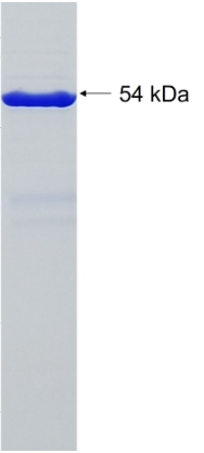 | Form : | The purified protein was lyophilized from sterile phosphate-buffered saline (PBS: 58 mM Na₂HPO₄, 17 mM NaH₂PO₄, 68 mM NaCl, pH 8.0). Prior to lyophilization, 5% (w/v) trehalose and 5% (w/v) mannitol were incorporated as cryoprotective excipients. The protein was eluted with a buffer containing 100 mM reduced glutathione (GSH). |
