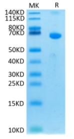 | Molecular Mass : | The protein has a predicted MW of 50.8 kDa. Due to glycosylation, the protein migrates to 60-75 kDa based on Tris-Bis PAGE result. |
