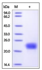 | Molecular Mass : | The protein has a calculated MW of 15.6 kDa. The protein migrates as 20-24 kDa under reducing (R) condition (SDS-PAGE) due to glycosylation. |
