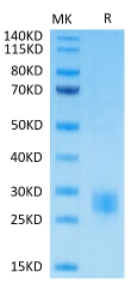 Molecular Mass : | The protein has a predicted MW of 16.3 kDa. Due to glycosylation, the protein migrates to 25-30 kDa based on Tris-Bis PAGE result. |
