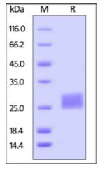 Molecular Mass : | The protein has a calculated MW of 15.4 kDa. The protein migrates as 25-30 kDa under reducing (R) condition (SDS-PAGE) due to different extent glycosylation. |