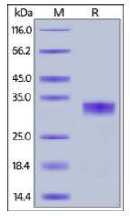 | Molecular Mass : | The protein has a calculated MW of 24.9 kDa. The protein migrates as 32-35 kDa under reducing (R) condition (SDS-PAGE) due to glycosylation. |