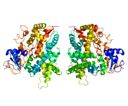 | Function | electron carrier activity; enzyme binding; heme binding; metal ion binding; monooxygenase activity; oxidoreductase activity; oxygen binding; oxidoreductase activity, acting on paired donors, with incorporation or reduction of molecular oxygen, NADH or NADPH as one donor, and incorporation of one atom of oxygen; oxidoreductase activity, acting on paired donors, with incorporation or reduction of molecular oxygen, reduced flavin or flavoprotein as one donor, and incorporation of one atom of oxygen |