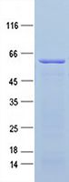 | Product Overview : | Purified recombinant protein of Human deoxyribonuclease I-like 3 (DNASE1L3), full length, with N-terminal GST and C-terminal His tag, expressed in E. coli. |