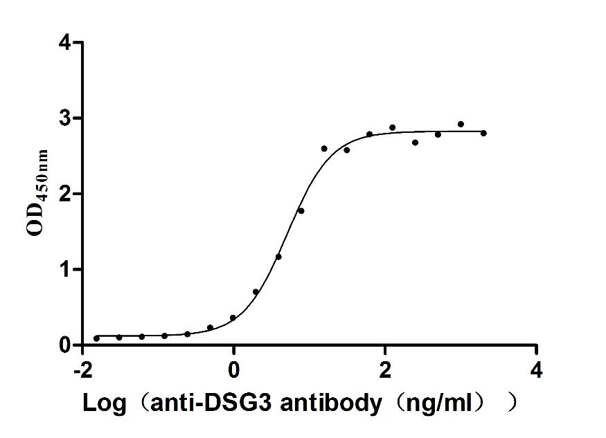 Measured by its binding ability in a functional ELISA. Immobilized Human DSG3 at 2 μg/mL can bind Anti-DSG3 recombinant antibody, the EC50 is 4.552-5.720 ng/mL. |