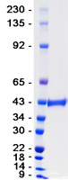 | Product Overview : | Recombinant protein from the full-length sequence of Homo sapiens decapping exoribonuclease (DXO), transcript variant 2 (NM_005510), with a DYKDDDDK tag was expressed in human cells. |