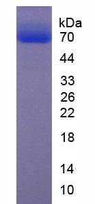 70kDa as determined by SDS-PAGE reducing conditions. |