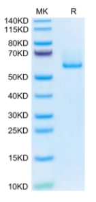 | Molecular Mass : | The protein has a predicted MW of 53.9 kDa. Due to glycosylation, the protein migrates to 55-60 kDa based on Tris-Bis PAGE result. |