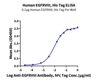 | Bio-activity : | Immobilized Human EGFRVIII, His Tag at 1ug/ml (100ul/Well) on the plate. Dose response curve for Anti-EGFRVIII Antibody, hFc Tag with the EC50 of 9.6ng/ml determined by ELISA. |