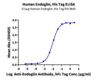 | Bio-activity : | Immobilized Human Endoglin, His Tag at 5μg/ml (100μl/well) on the plate. Dose response curve for Anti-Endoglin Antibody, hFc Tag with the EC50 of 9.4ng/ml determined by ELISA. |