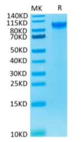 | Molecular Mass : | The protein has a predicted MW of 94.8 kDa. Due to glycosylation, the protein migrates to 95-115 kDa based on Tris-Bis PAGE result. |