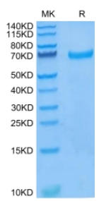 | Molecular Mass : | The protein has a predicted MW of 58.2 kDa. Due to glycosylation, the protein migrates to 60-70 kDa based on Tris-Bis PAGE result. |