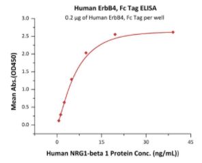 | Product Overview : | Recombinant Human ERBB4 protein (Gln26-Pro651), fused to human IgG1 Fc tag at C-terminus, was expressed in human 293 cells (HEK293). |