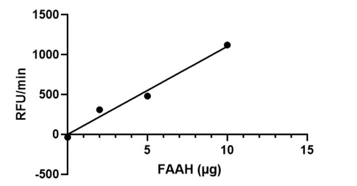 | Unit Definition : | One unit is defined as the amount of enzyme required to produce 1 pmole of AMC per minute in 50 mM Tris, pH 9.0, 1 mM EDTA and 20 μM AMC Arachidonyl Amide (AMCAA) at 37 centigrade. |
